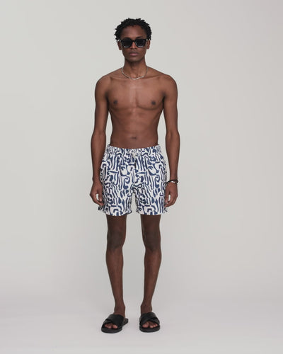 OAS Marbling swim shorts are tailored from a quick-drying shell fabric, featuring a pattern of abstract shapes inspired by Matisse’s paper cut-outs. Cut for a relaxed, straight fit with an elasticized drawstring waistband and built-in mesh briefs for comfort and support. Keep your keys and cards securely stored in the hidden zip pocket.