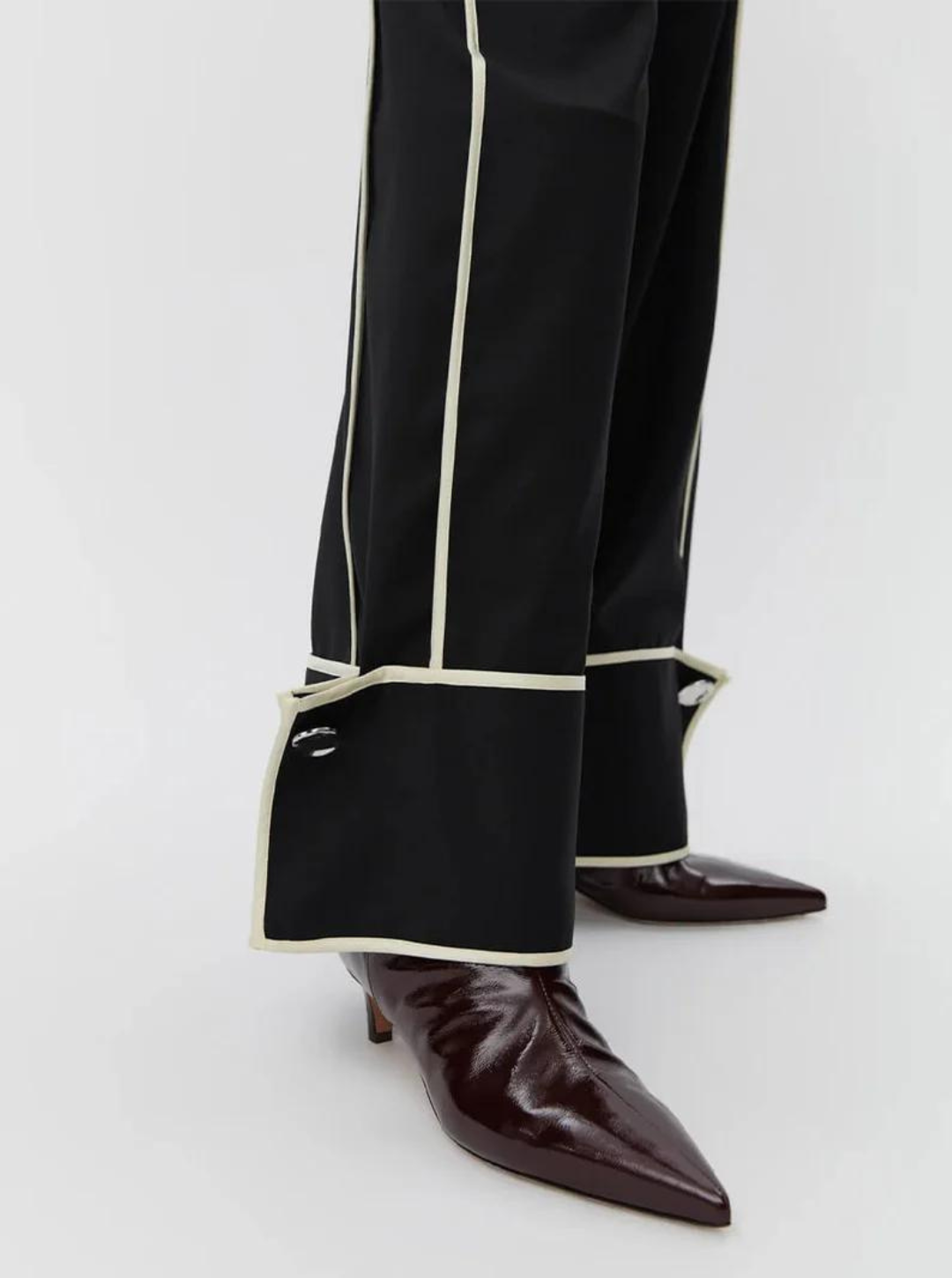 Elegant in style, the wide leg pants Walt by DAY Birger et Mikkelsen are made from a luxurious wool fabric. These flattering mid-rise trousers have beautiful contrast cream seams, a zip fly and hook closure, side pockets and oversized ankle cuffs with faux buttons at the sides. Pair with the matching Tessa shirt for a sophisticated an co-ordinated look.