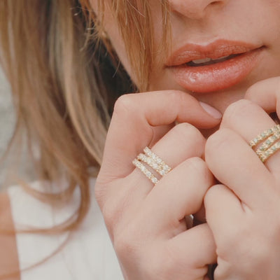 A modern take on the half-eternity ring, Amalia features three stacked bands that wrap around the finger.