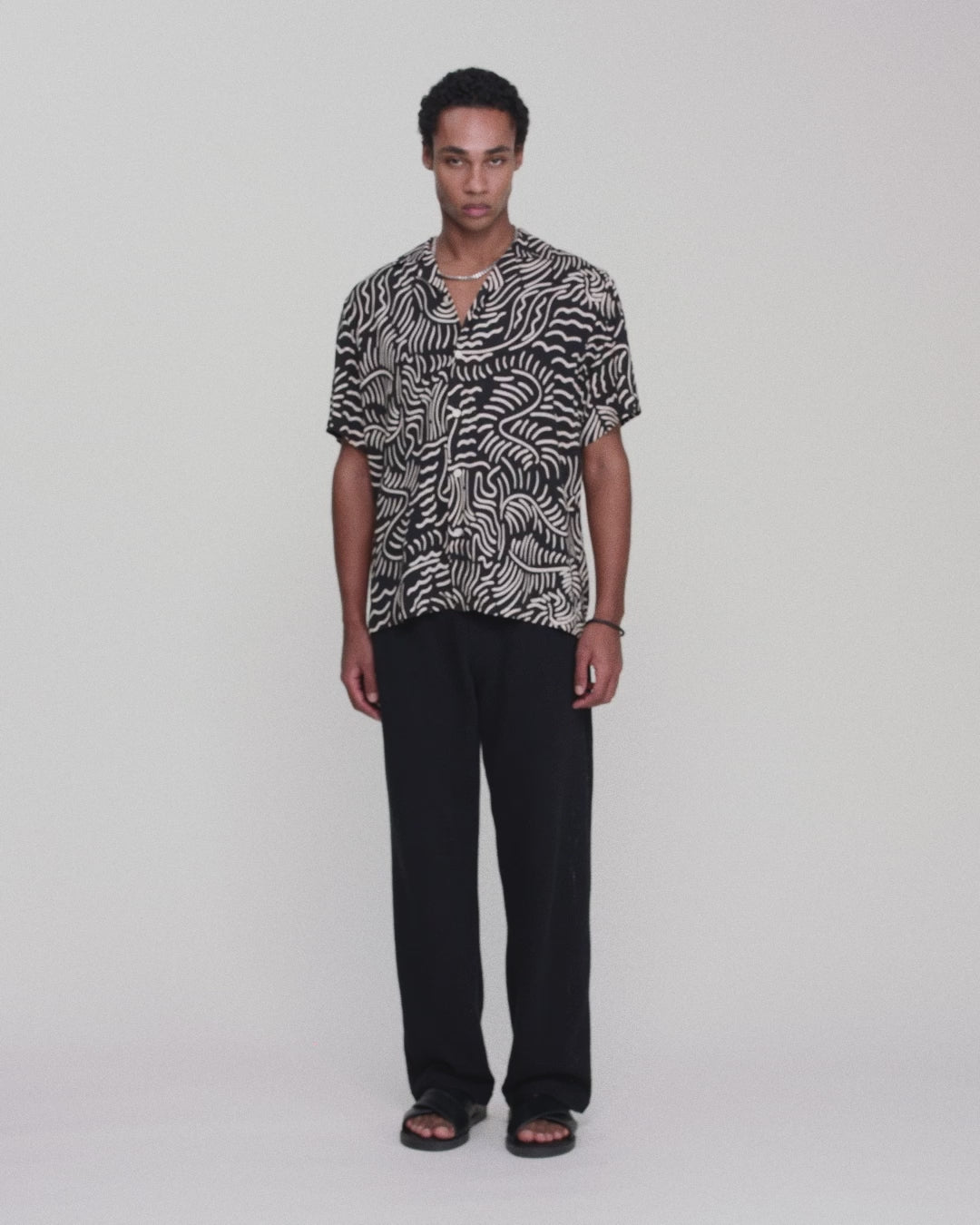 OAS Viscose Shirt - Black and white short-sleeved viscose shirt. Lightweight and breathable with a silky soft feel. Relaxed fit, slightly dropped shoulders.